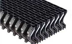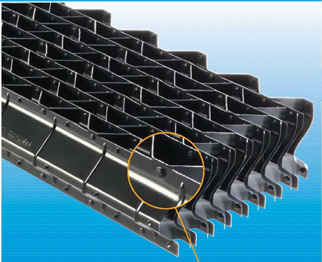 Honeycomb PVC fills, cellulose cooling pads, and drift eliminators.